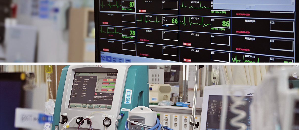 청주성모병원 집중치료센터는 일반적인 의료설비로는 충분히 관리할 수 없는 중증환자와
